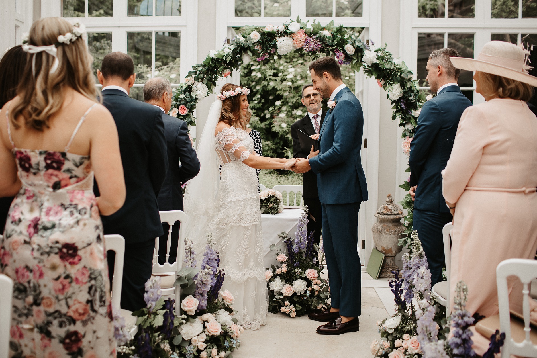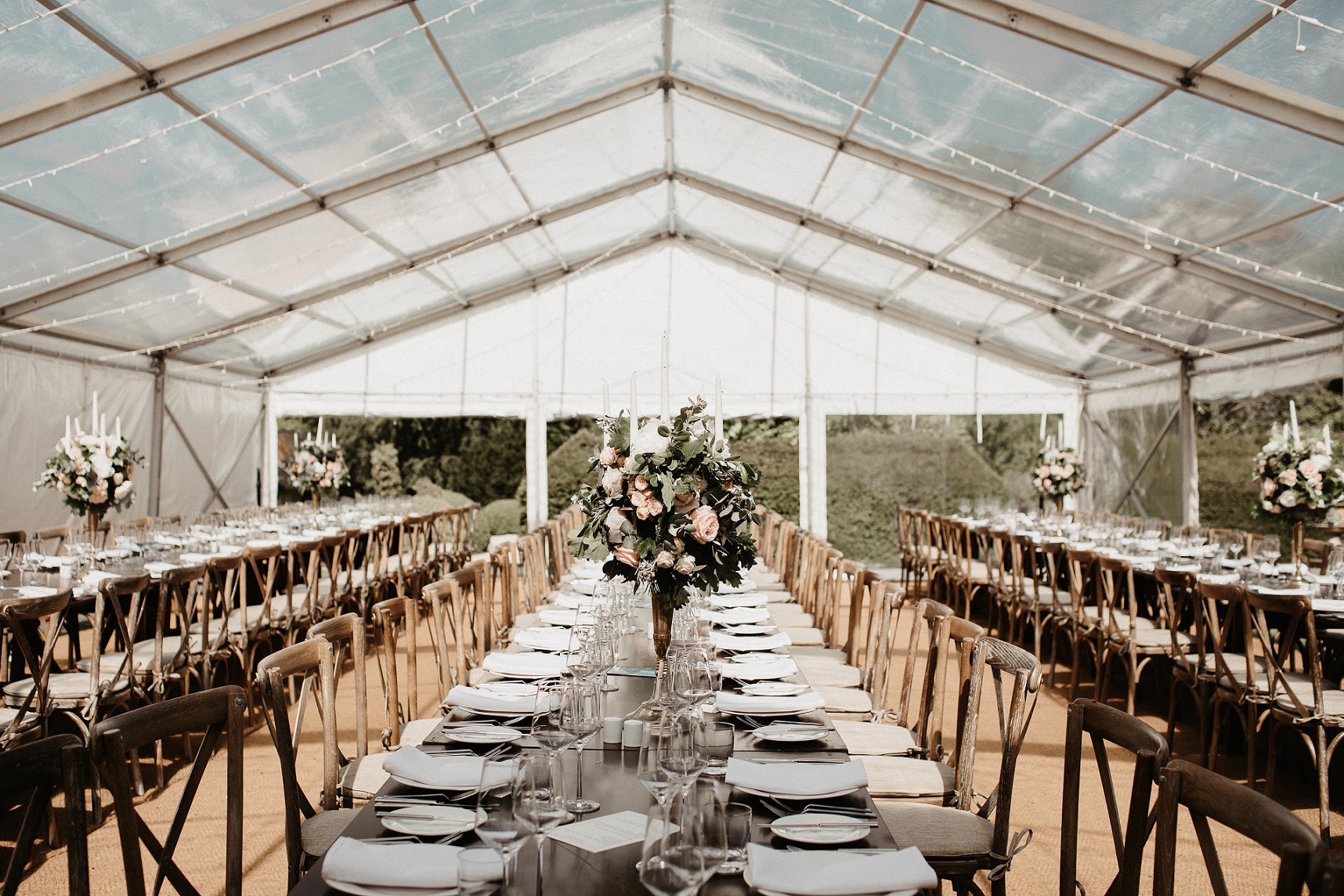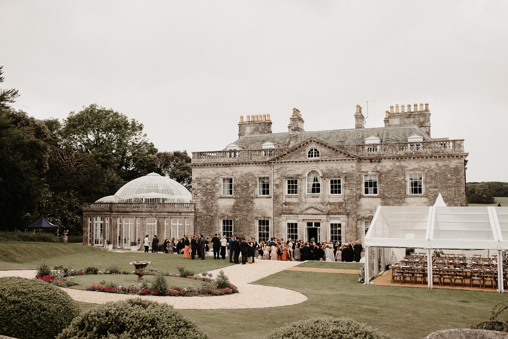 Summer drinks receptions can be held in the extensive formal gardens or on the terrace, and the wedding breakfast can be held in the elegant drawing room or in a marquee in the garden for larger parties. After the celebrations, guests can stay in the main house or in the Garden House next door. Alternatively, glamping or camping accommodation can be arranged.